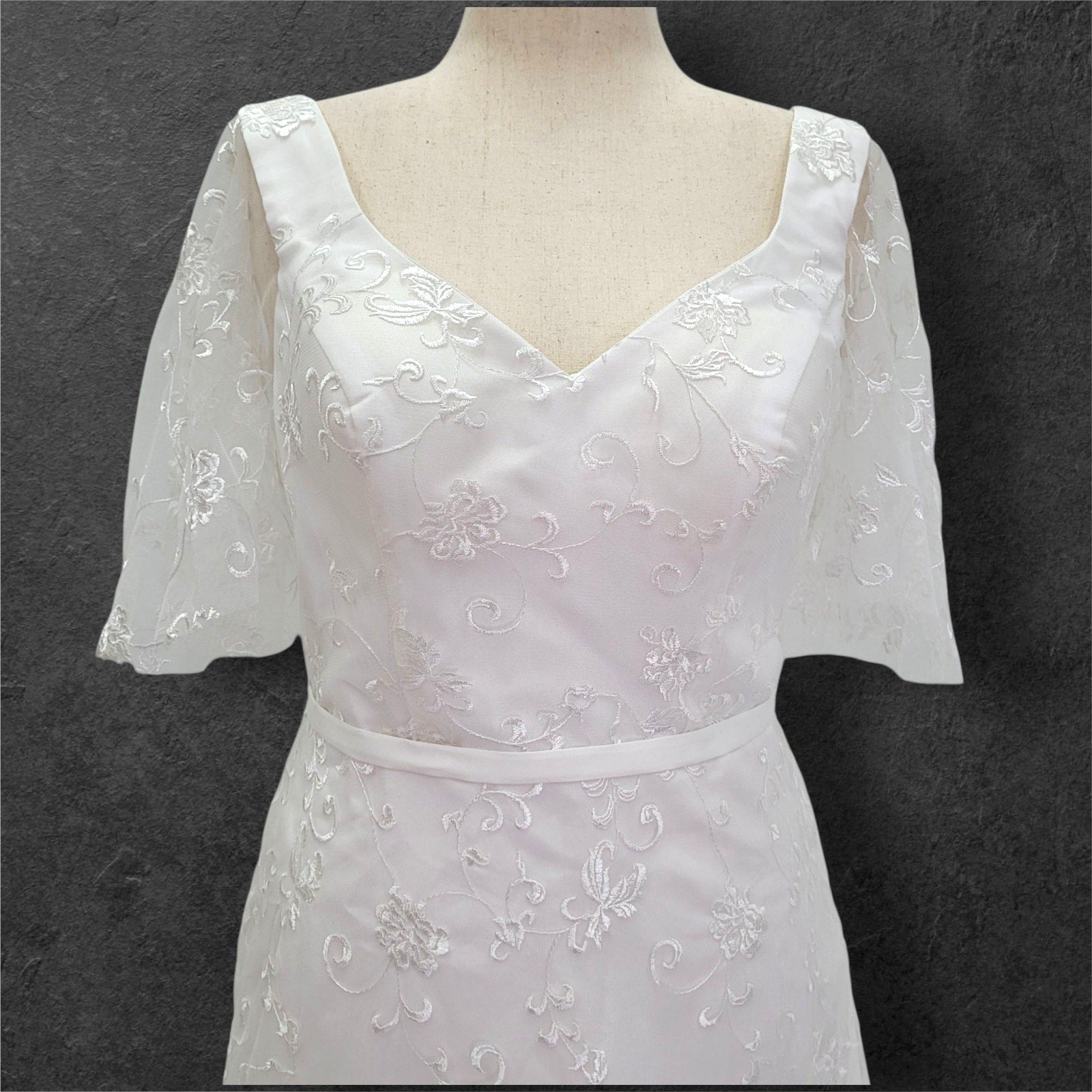 Stunning A-Line Wedding Dress. Make your special day even more memorable with this beautiful gown! Featuring elegant trumpet sleeves, a flattering V-back, and a romantic sweetheart neckline, this dress is designed to make you feel like a princess. Don't miss out on this dream dress!