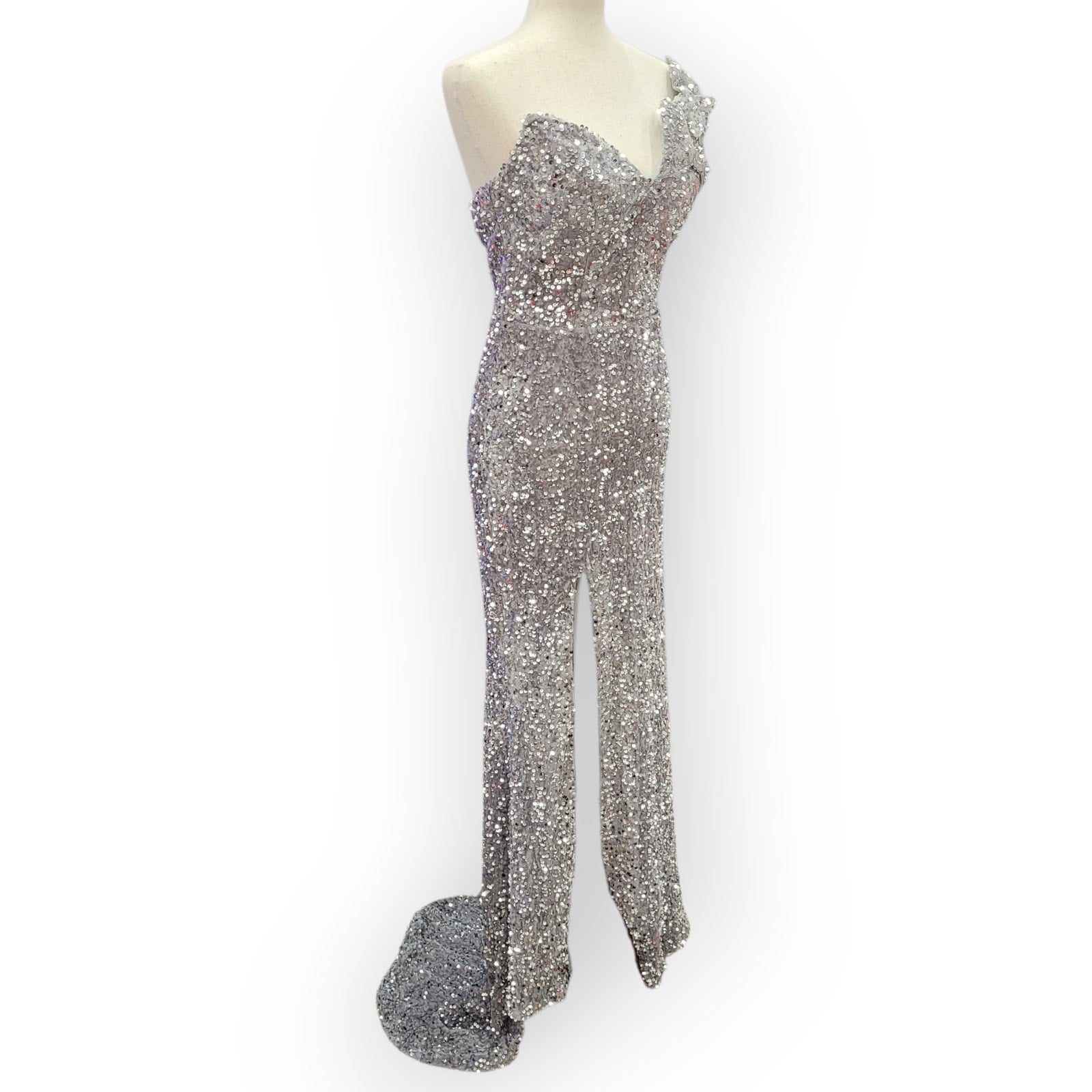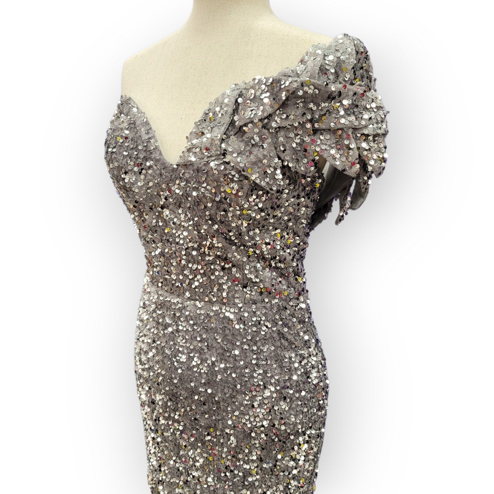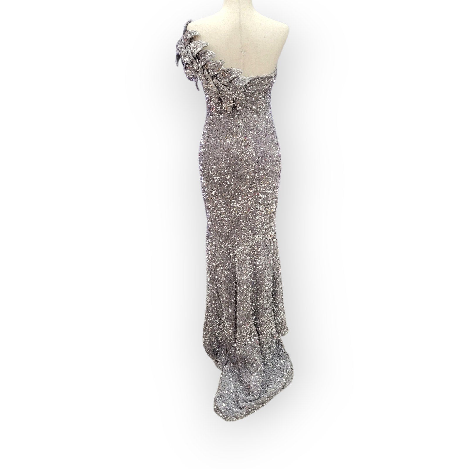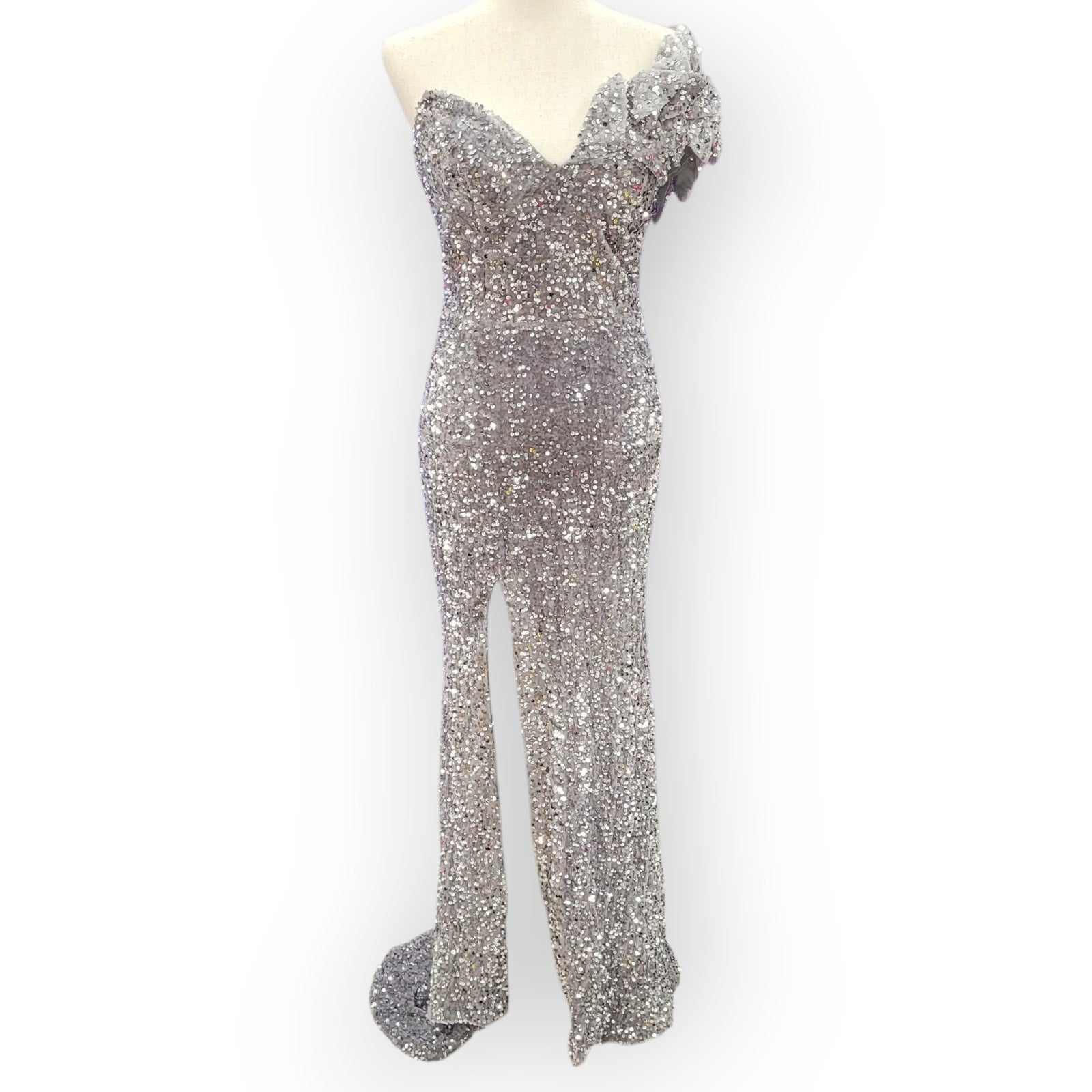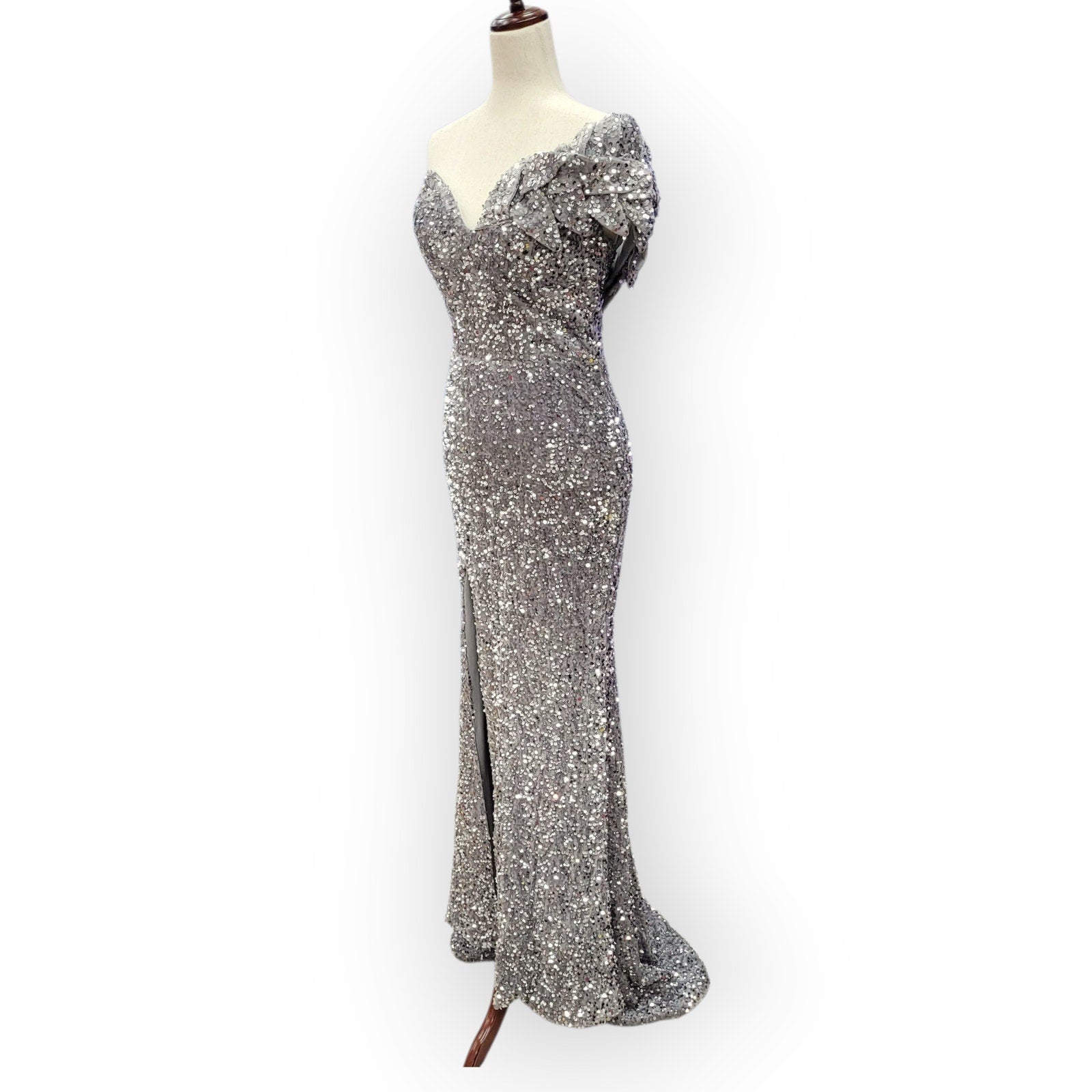 Elegant and Fun Sequin Evening Gown with Decorative Shoulder Strap