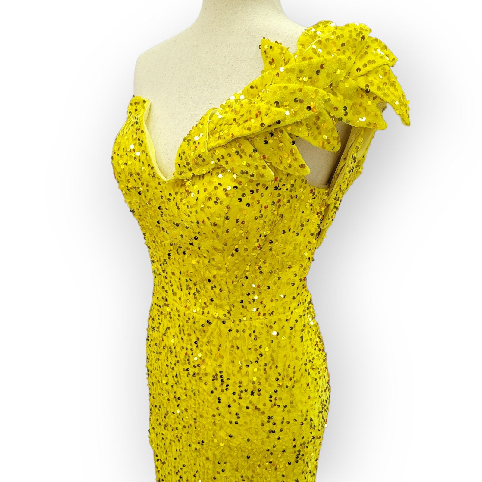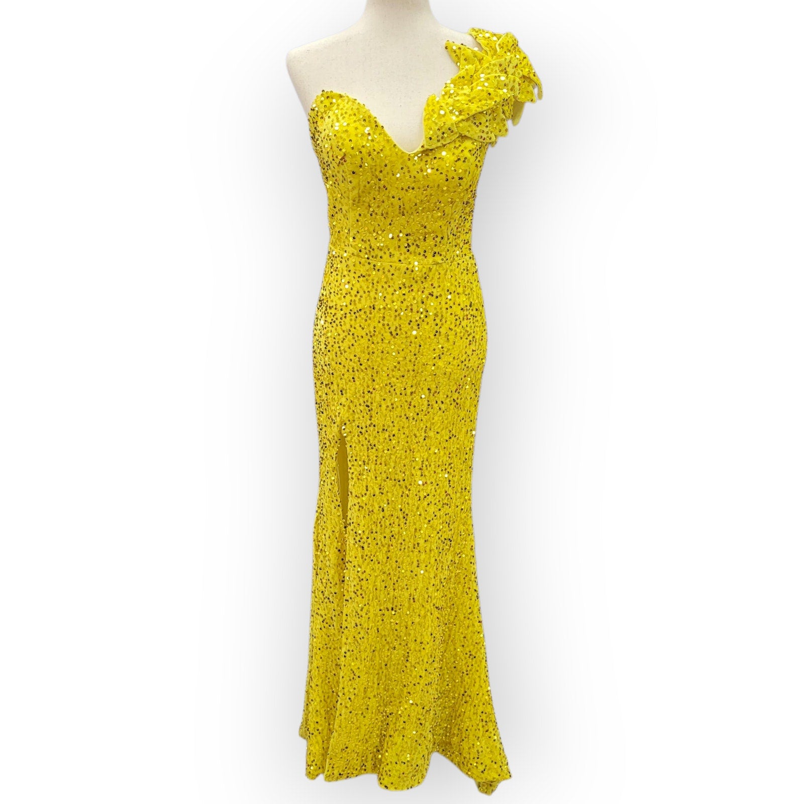 Elegant and Fun Sequin Evening Gown with Decorative Shoulder Strap
