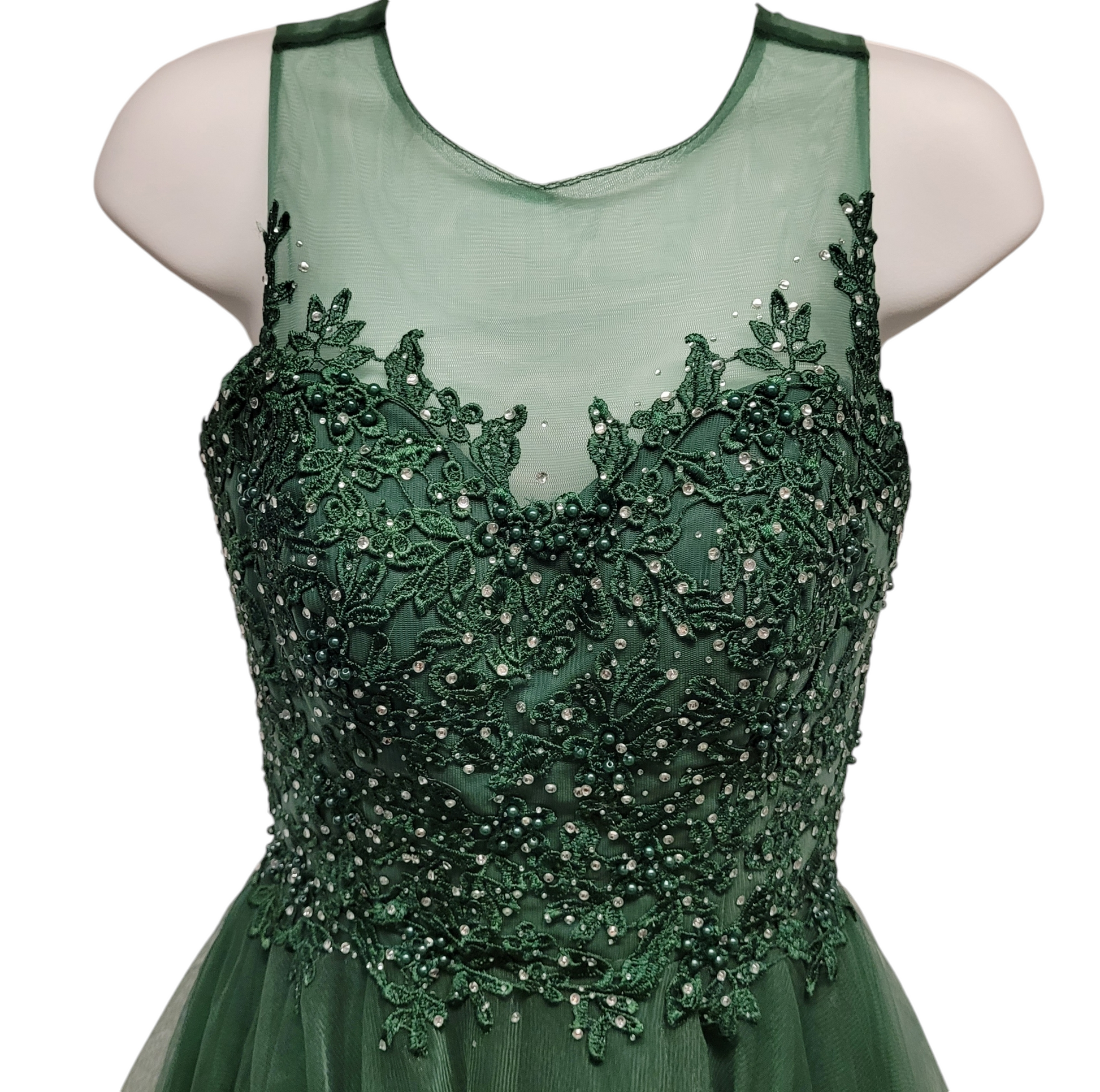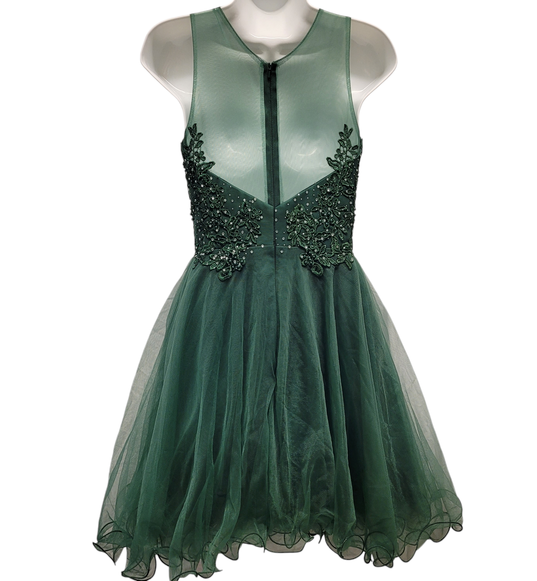 Twirl heads and hearts in this enchanting Evergreen Short Mesh Sweetheart Dress! The flirtatious sweetheart neckline frames your décolletage perfectly, while the dazzling beaded bodice catches every light. A playful tulle skirt adds bounce to your step, and the mesh back brings just the right amount of sass. Perfect for making unforgettable memories at any special occasion!