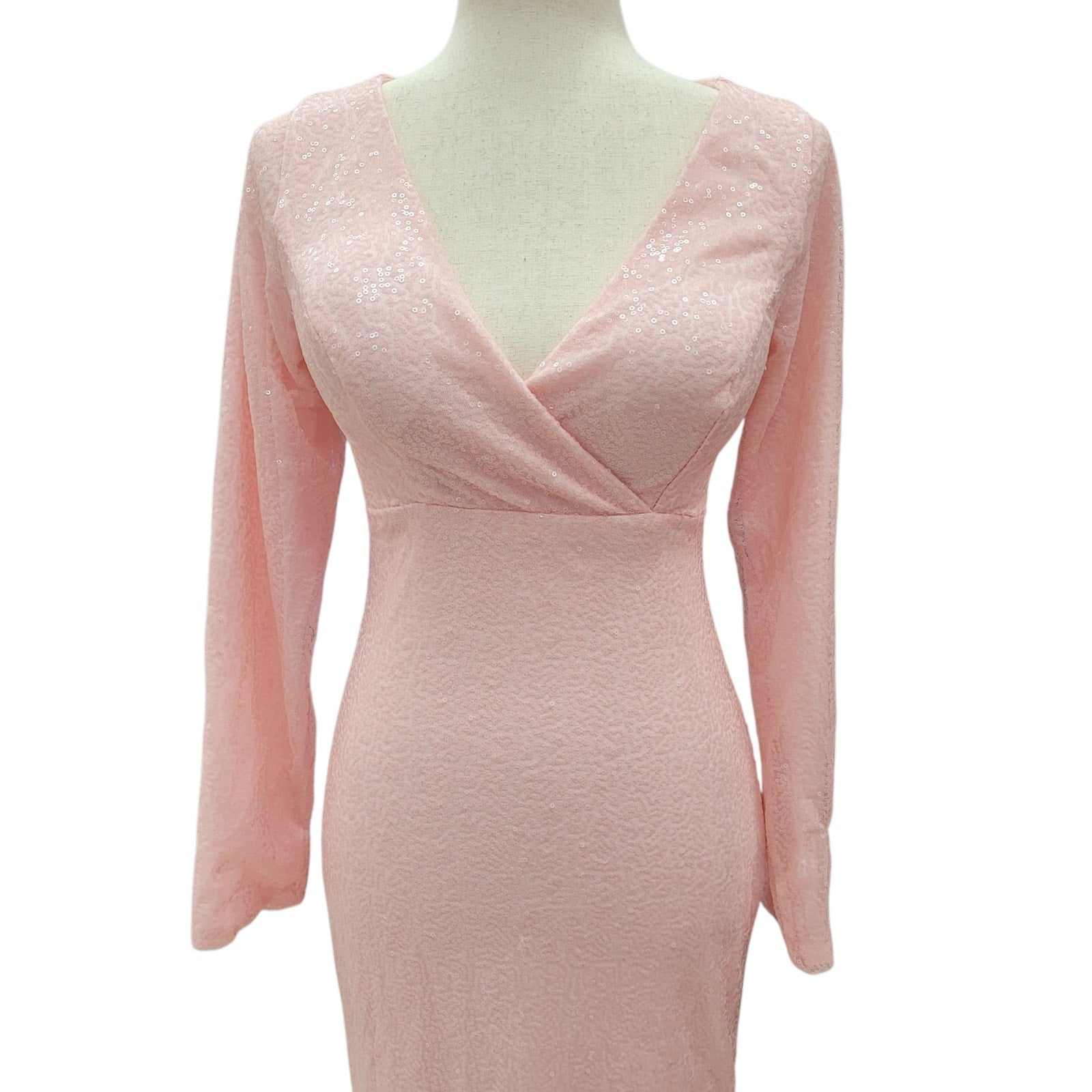 Light Pink Fitted Sequin Gown with Long Sleeves