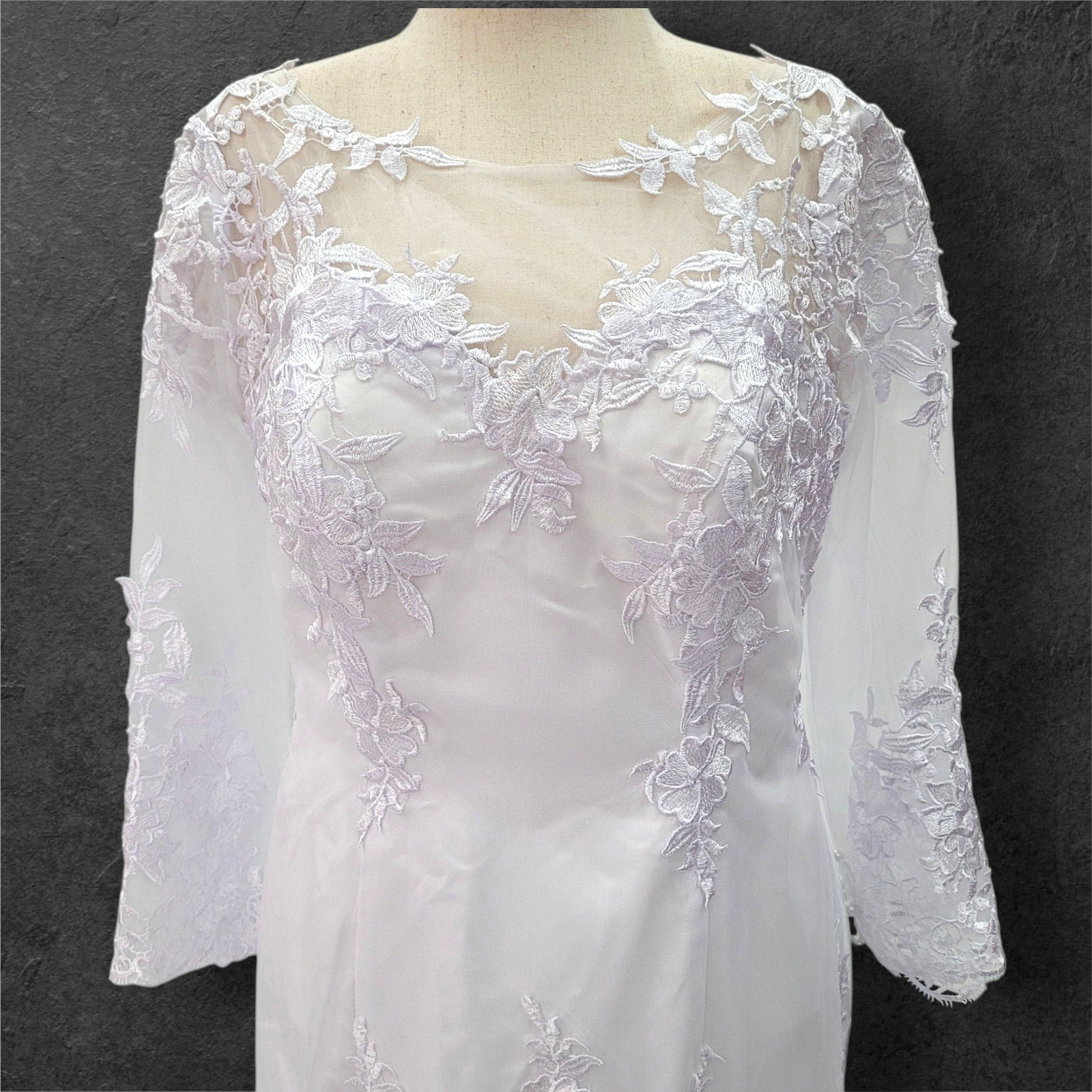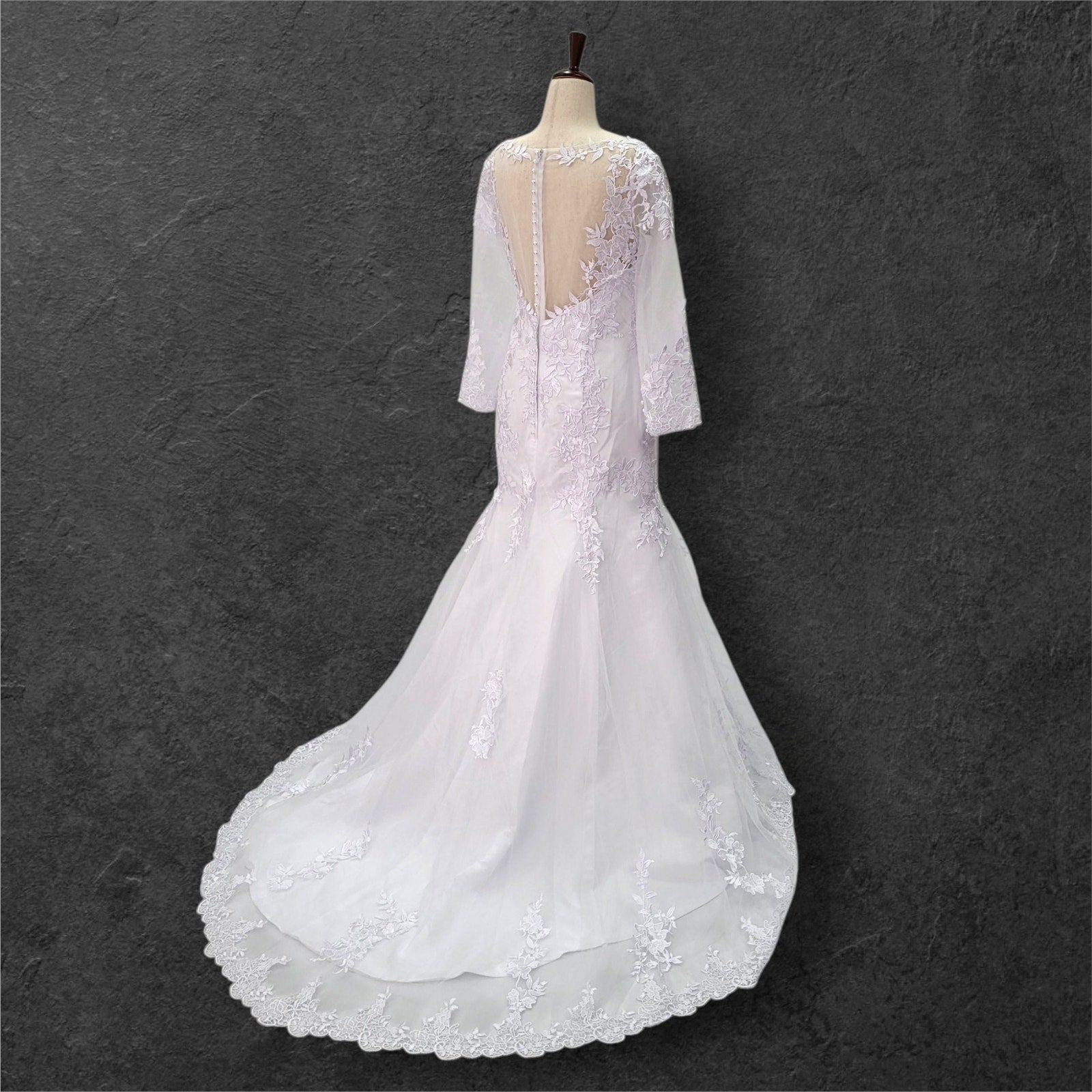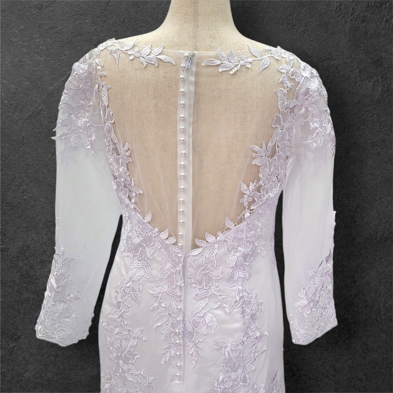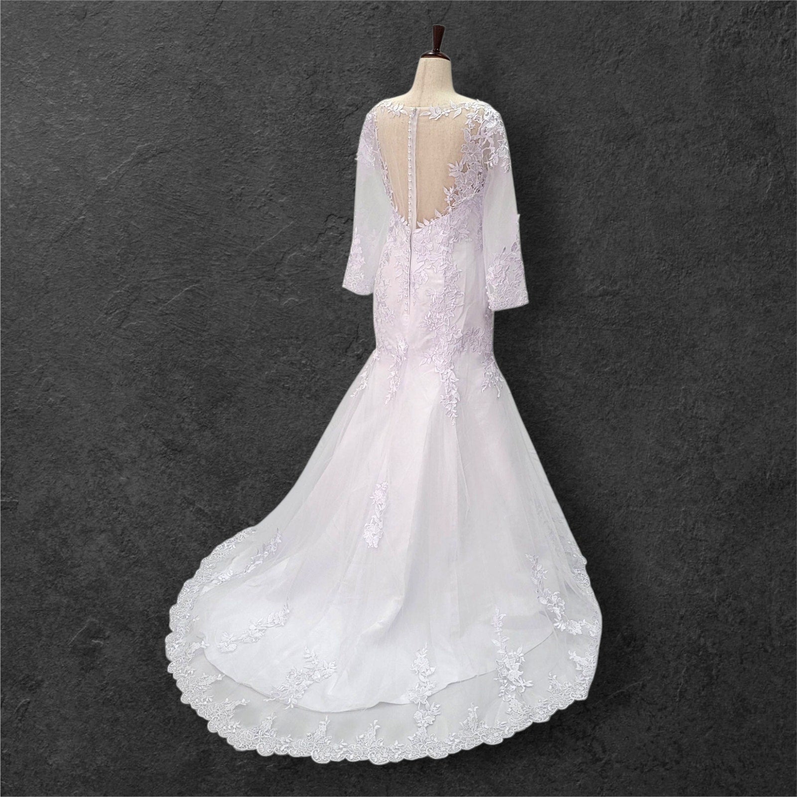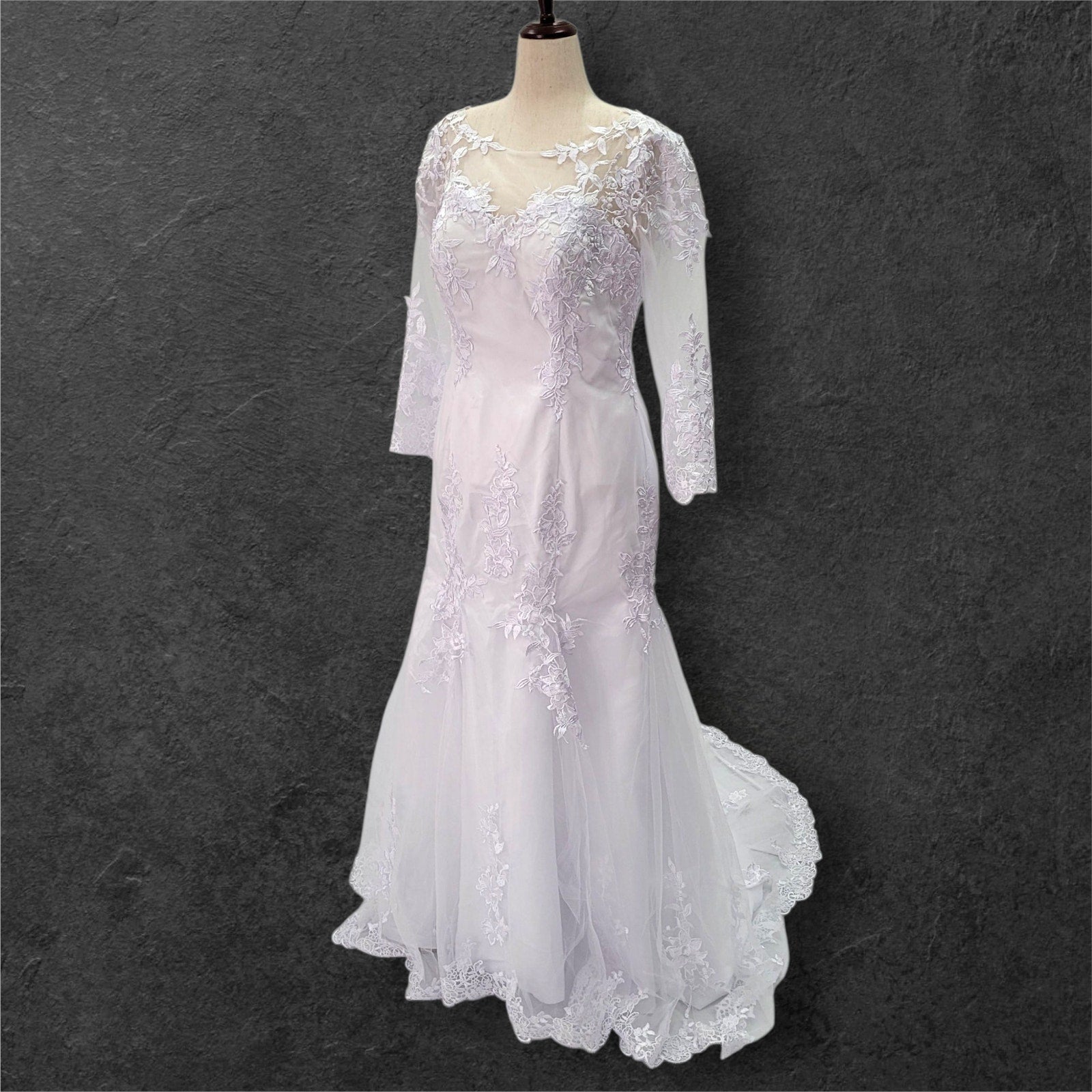 This stunning fit and flare wedding dress is perfect for your special day! The long sleeves and high back provide elegance and coverage, while the mesh design adds a touch of modern romance. The zipper closure ensures a secure and comfortable fit.