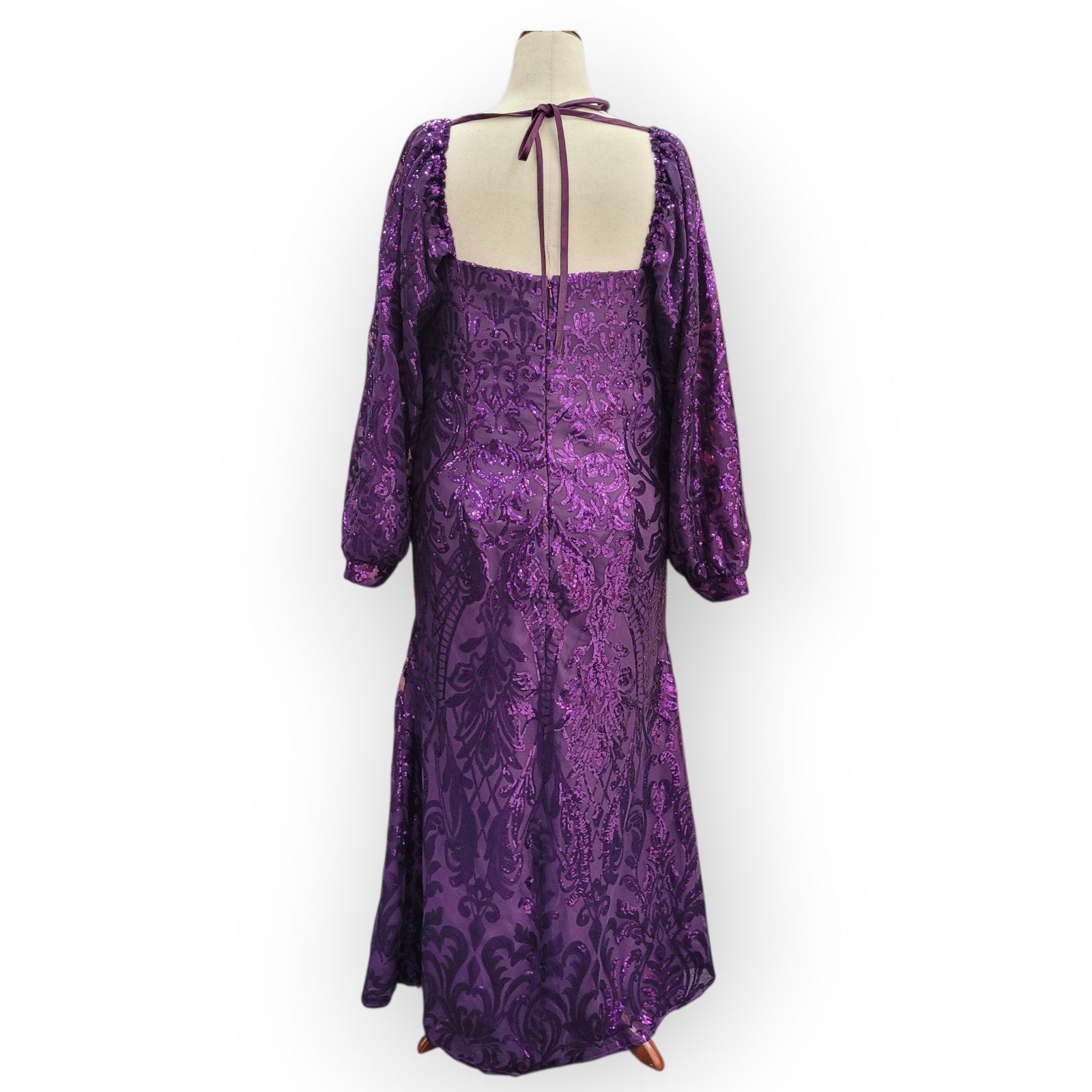 This long-sleeved, fitted purple sequin dress is sure to turn heads! It's perfect for a night out, a party, or any special occasion. It features a slim silhouette that will make you feel confident and beautiful.