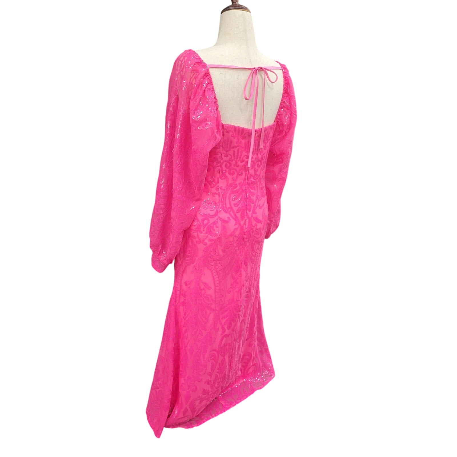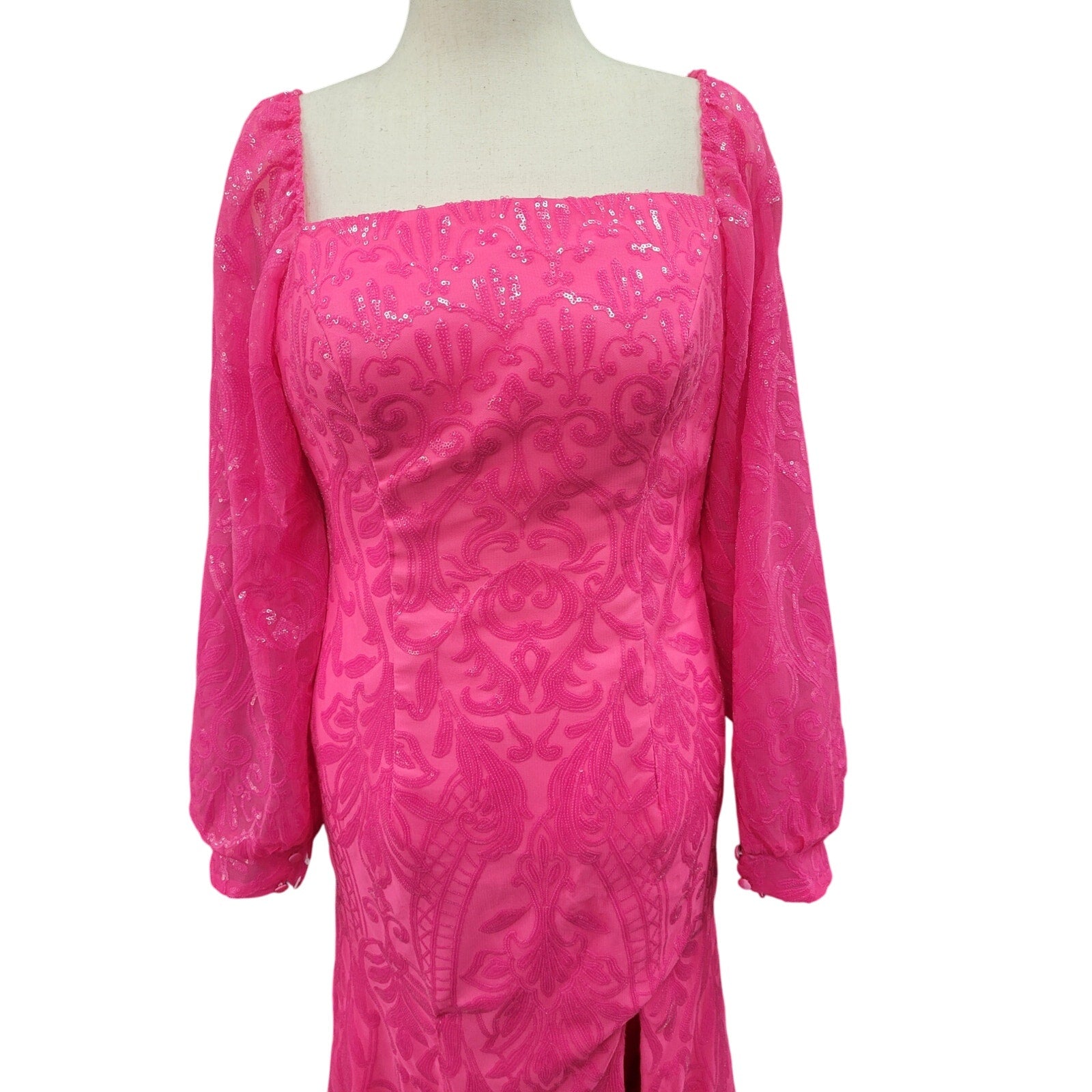 Long Sleeved Patterned Sequin Gown Size 16 Hot Pink
