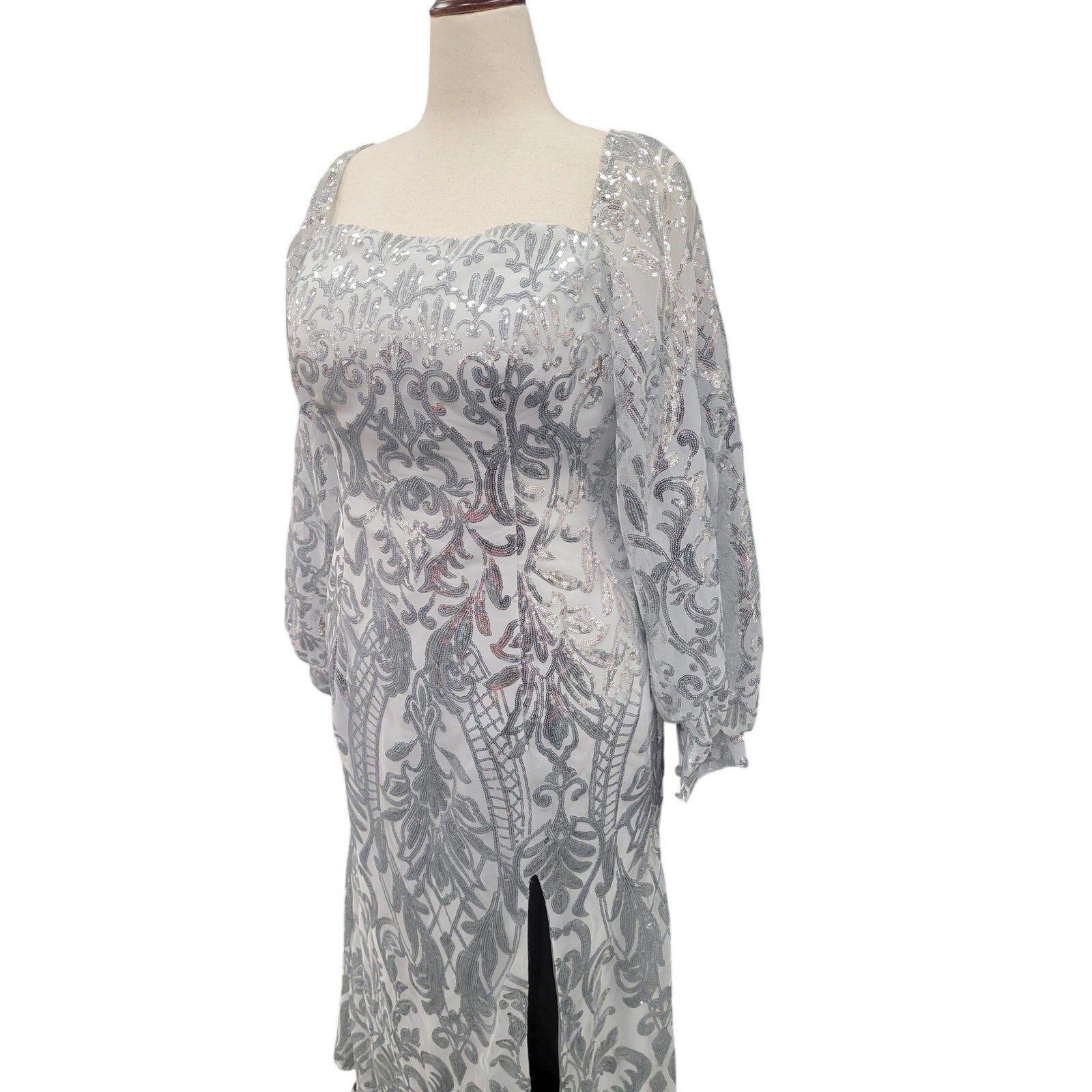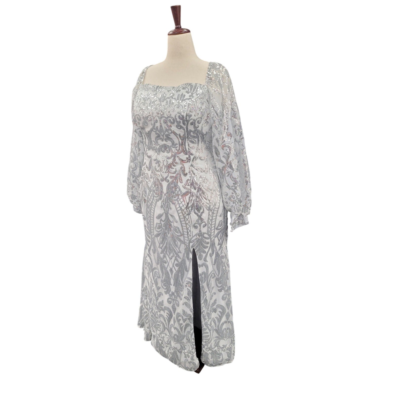 Long Sleeved Patterned Sequin Gown Size 16 XL