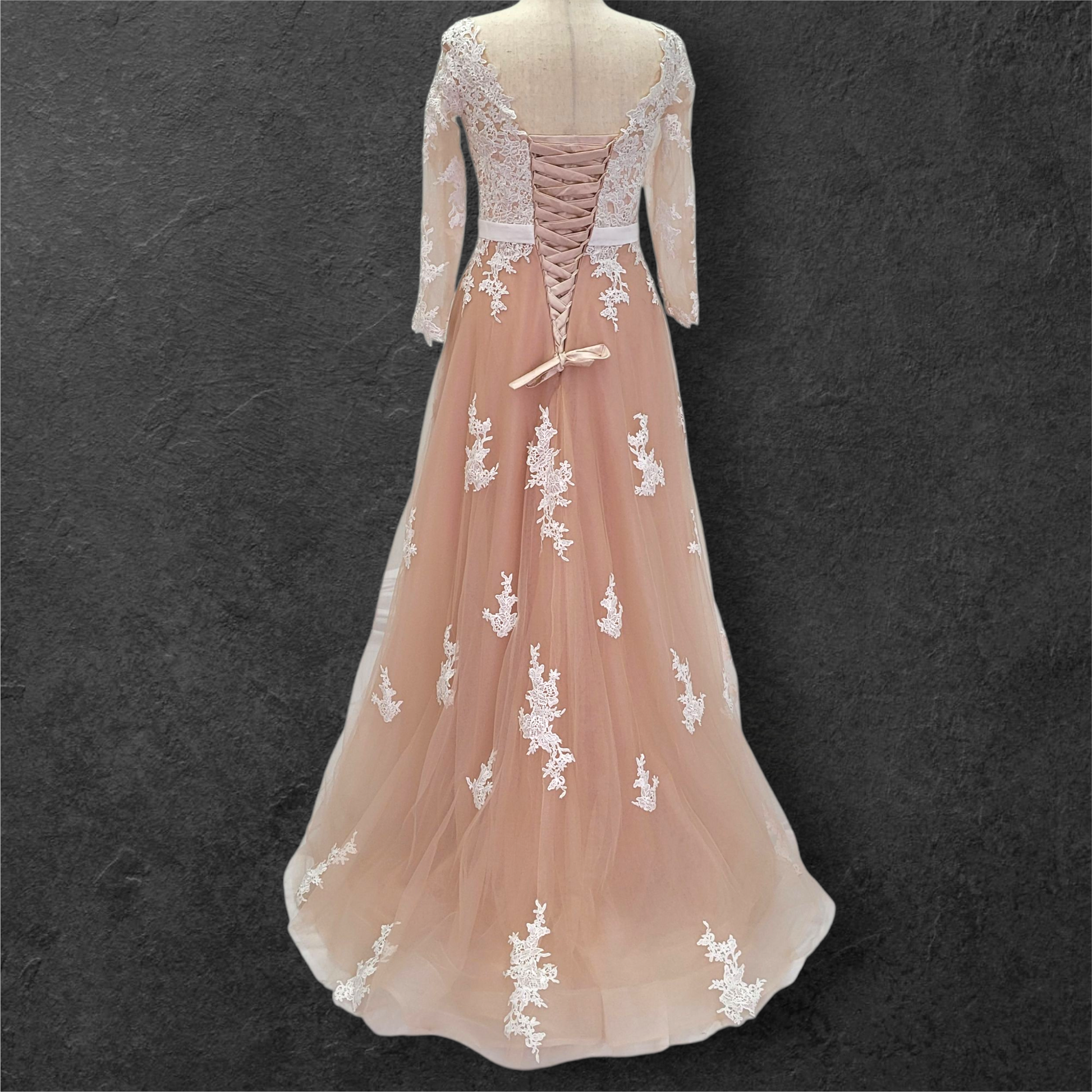 Beige Pink Ballgown with Silver Jeweled Belt and Floral Appliques
