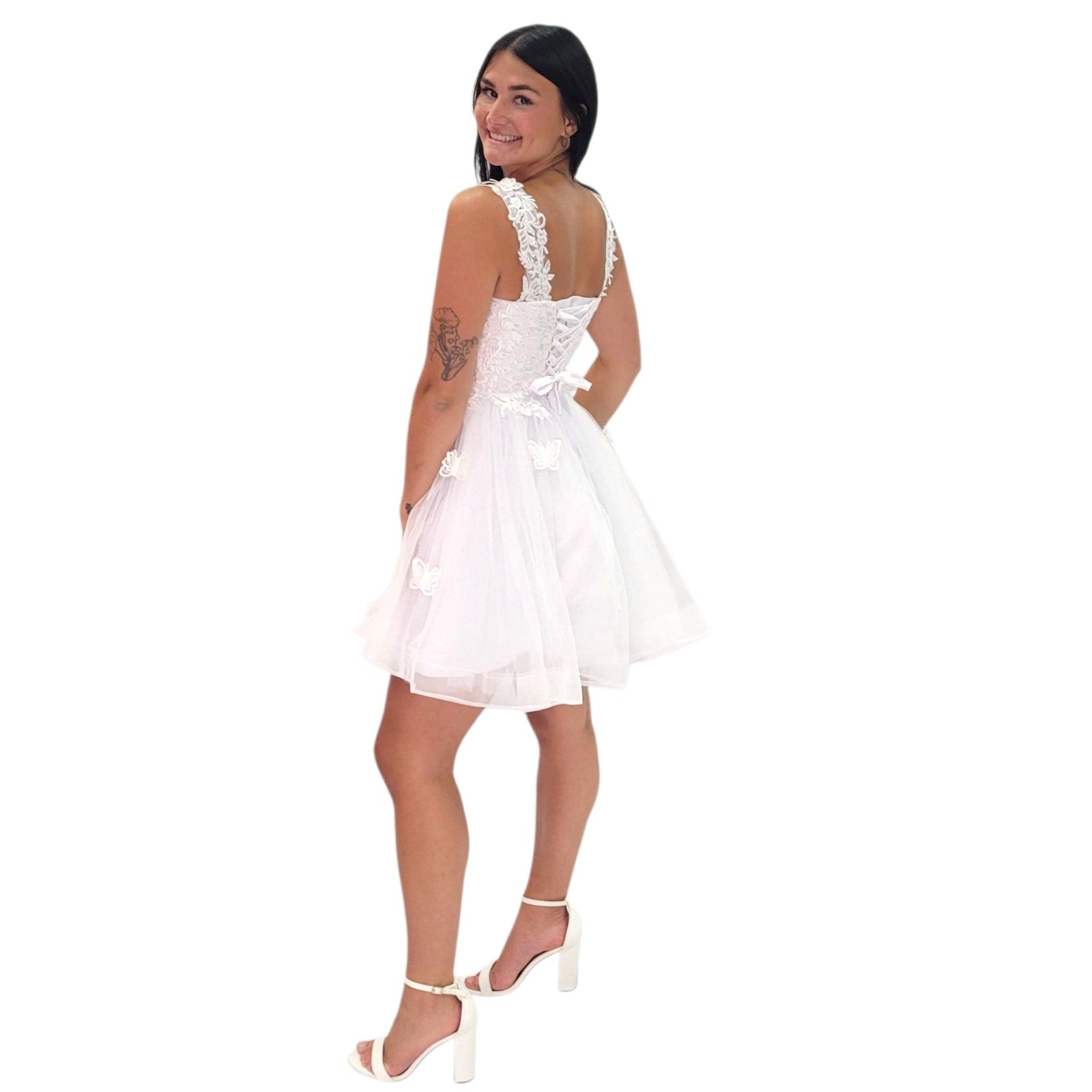 Short Butterfly Cocktail Dress with Tulle Skirt and Corset back