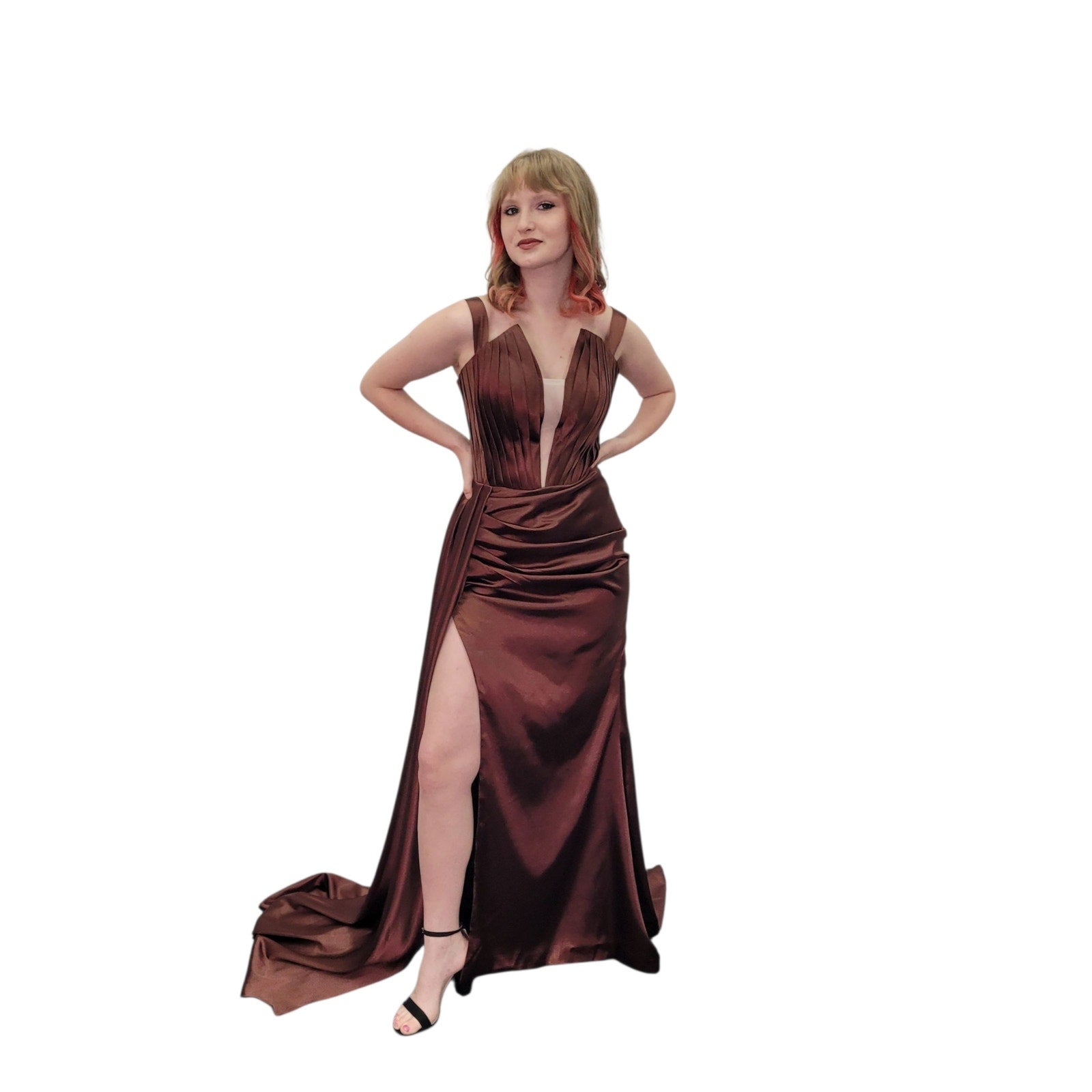 Silky Satin Evening Gown with Plunging V Neck and Corset Back
