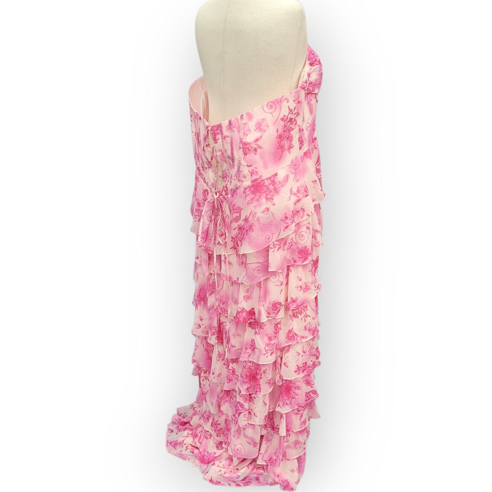 Strapless Pink Floral Tiered Dress with Corset Back