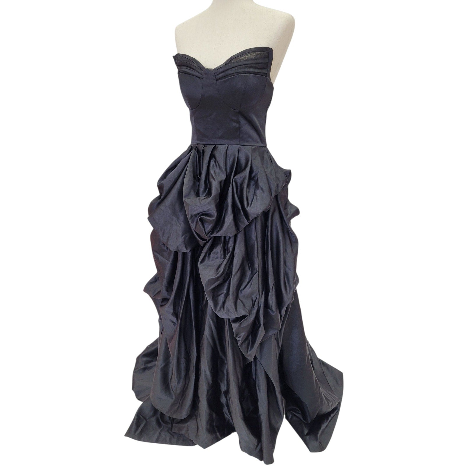 Stunning Strapless Black Satin Ball Gown with Pickups