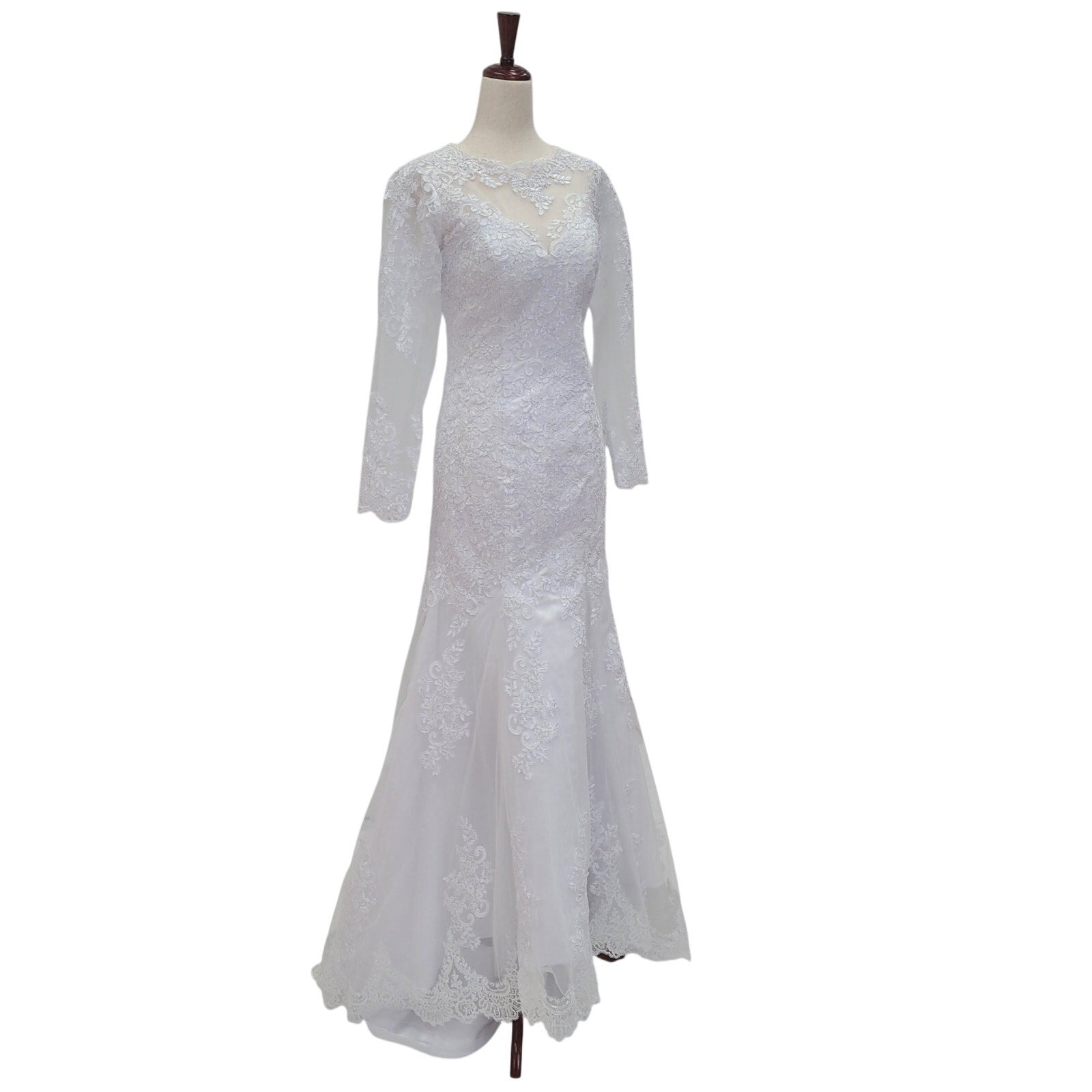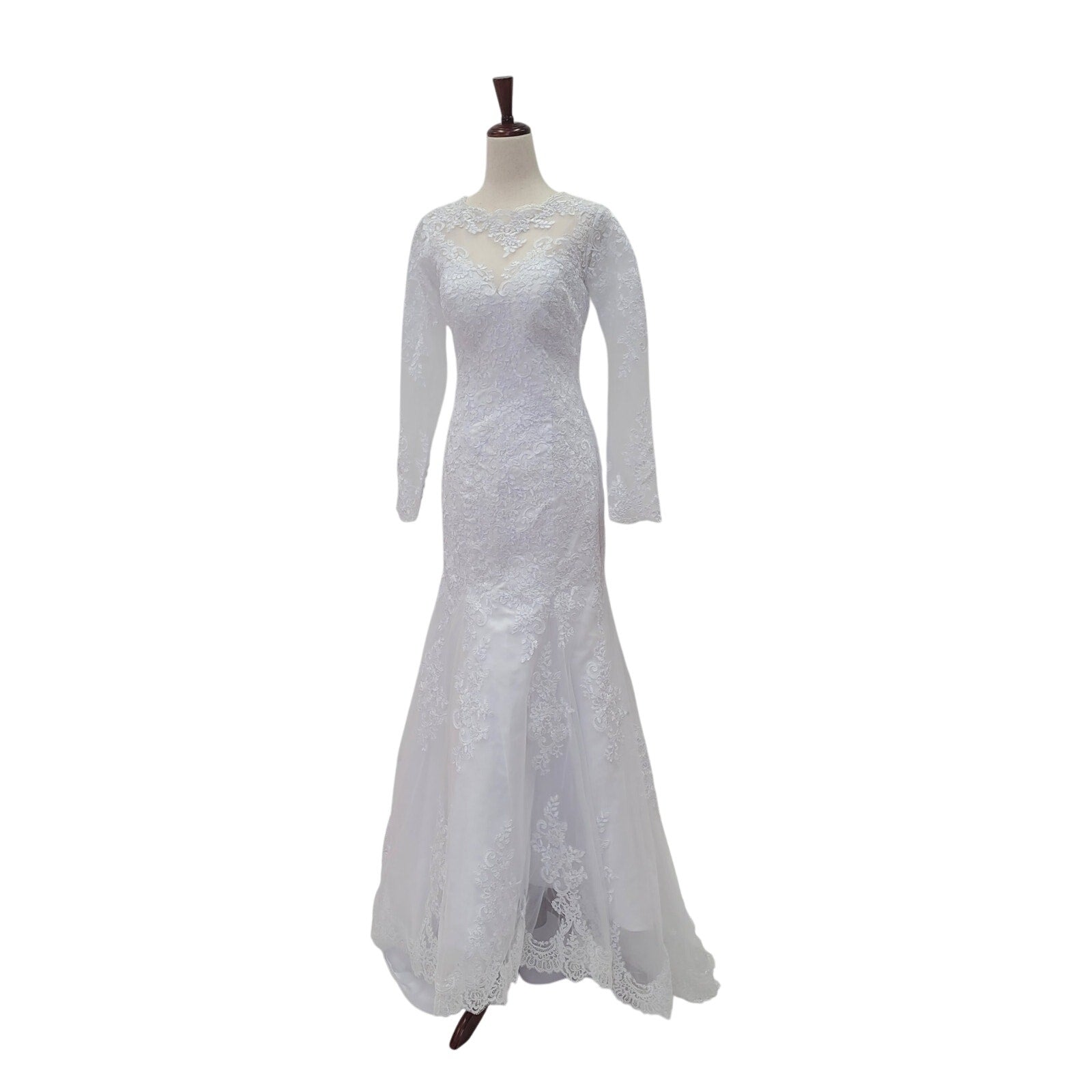 Long Sleeve Trumpet Style High Neckline Wedding Dress