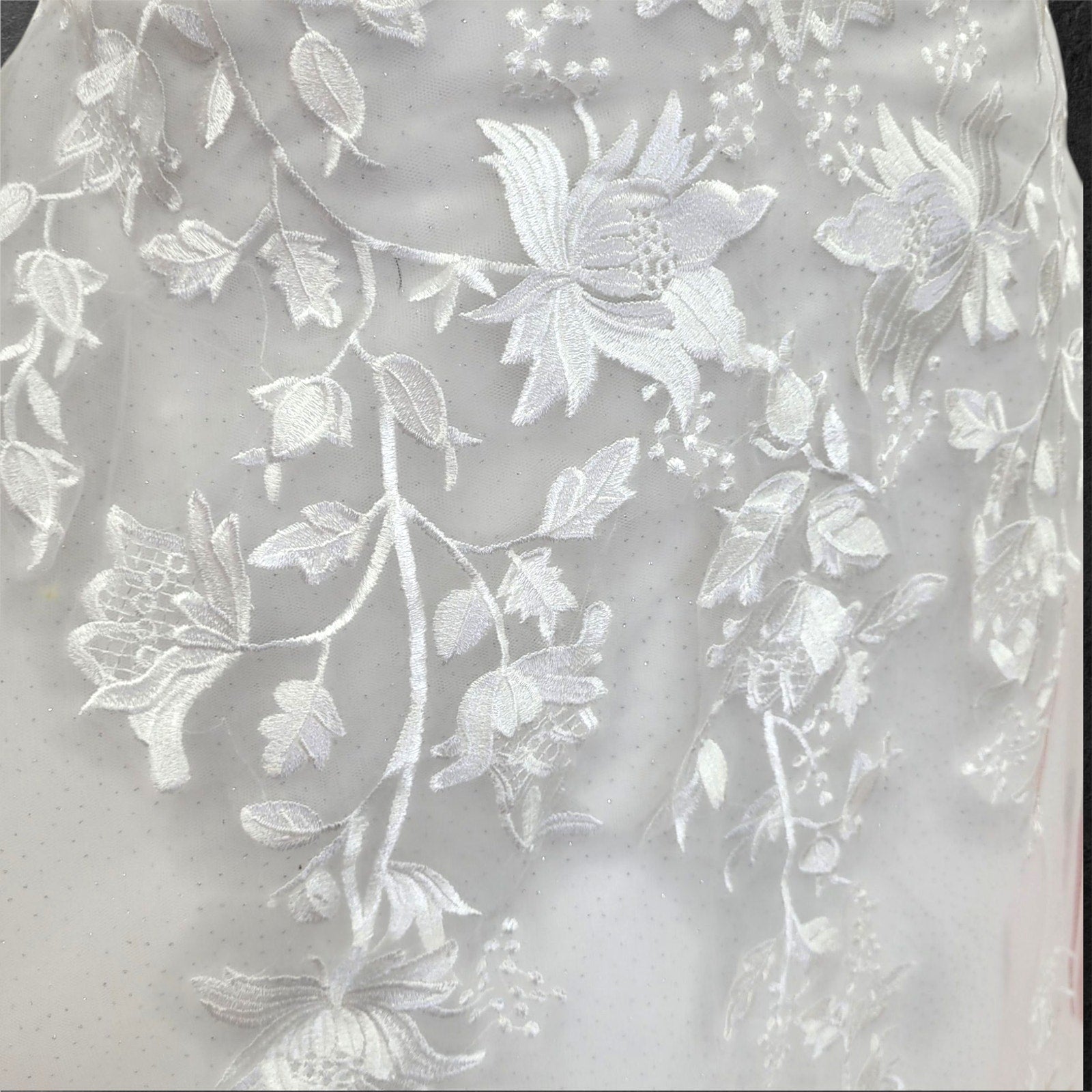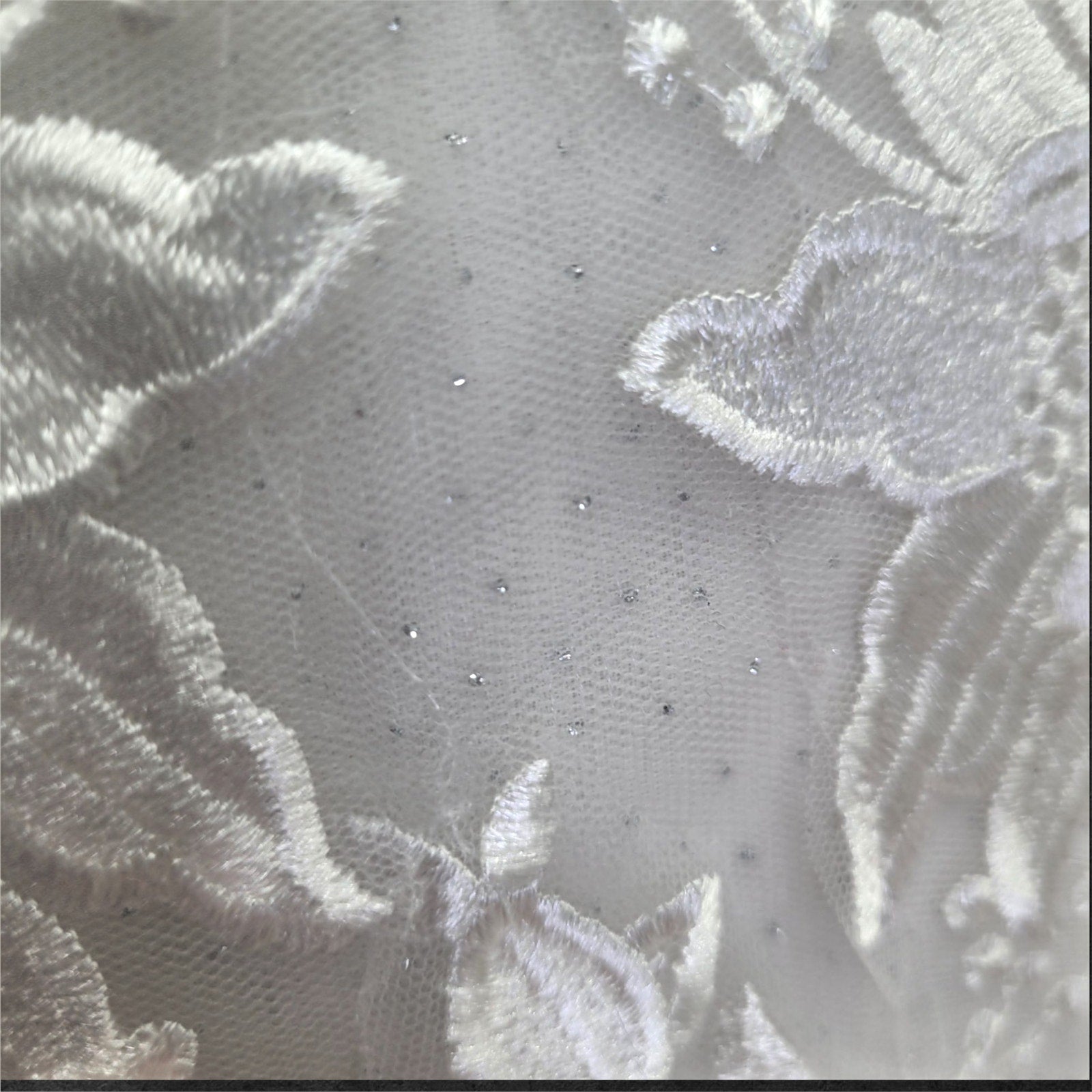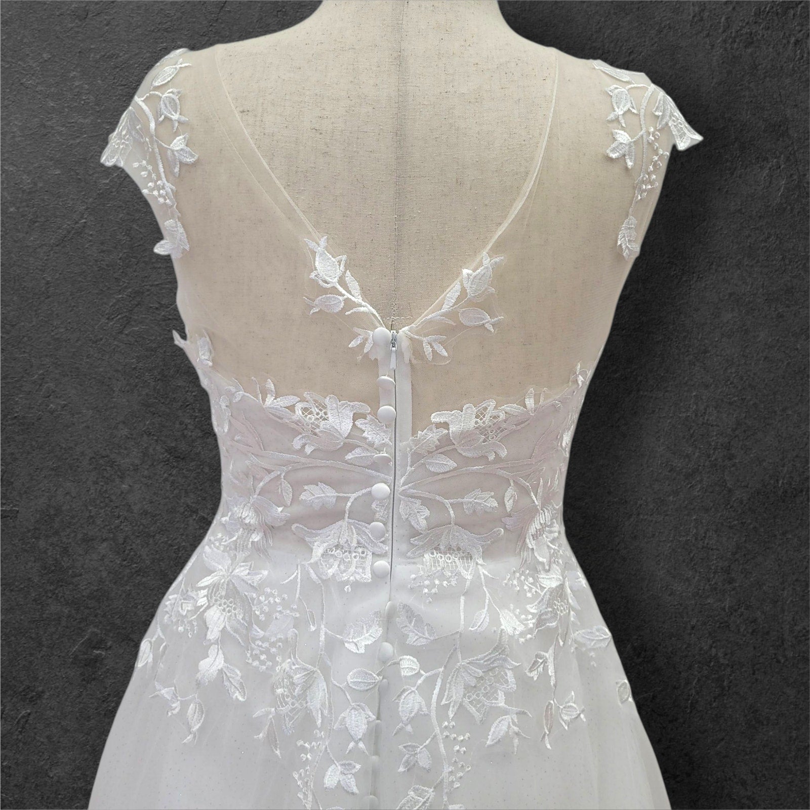Cap Sleeve Wedding Dress with Floral Embroidery on Sparkle Fabric