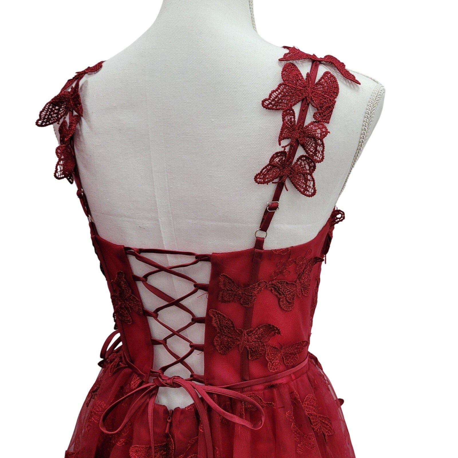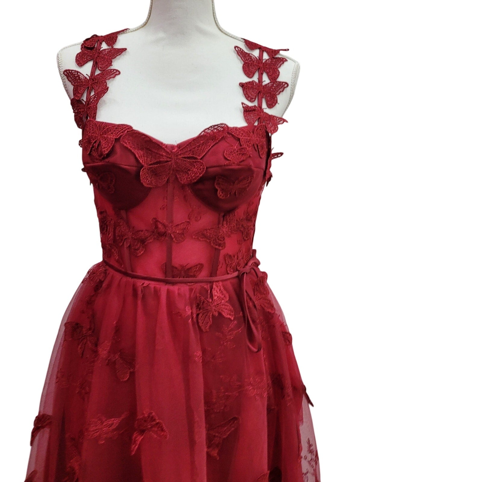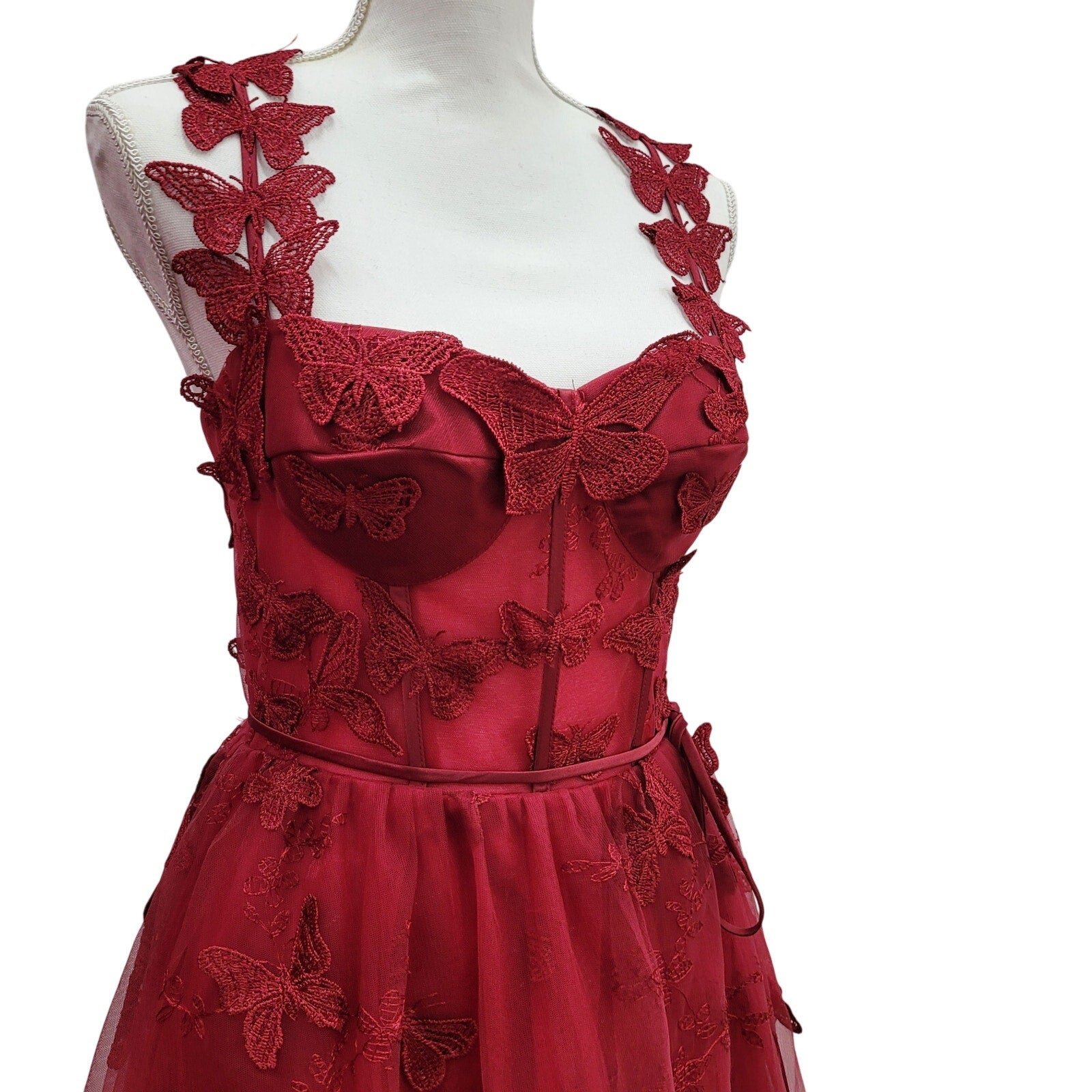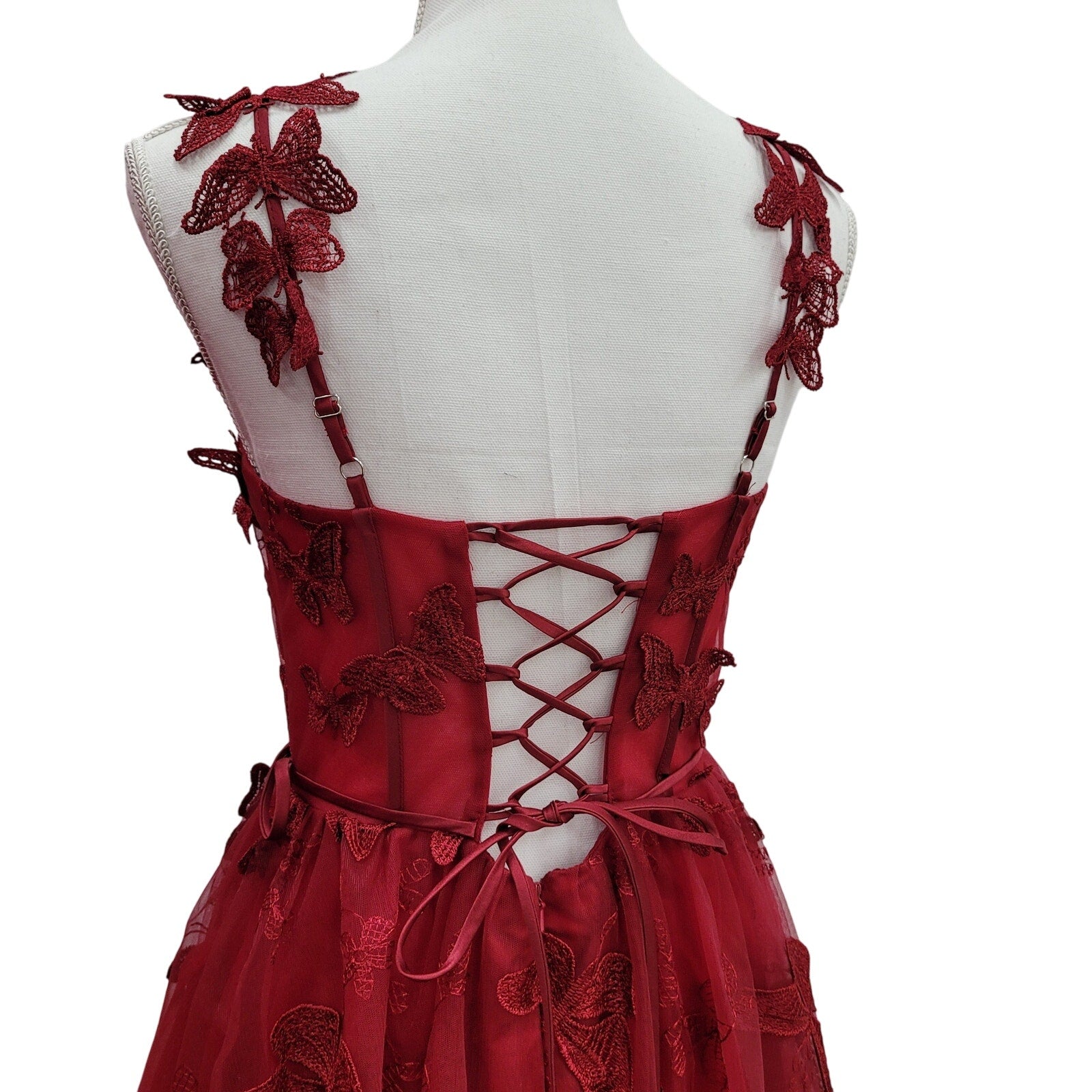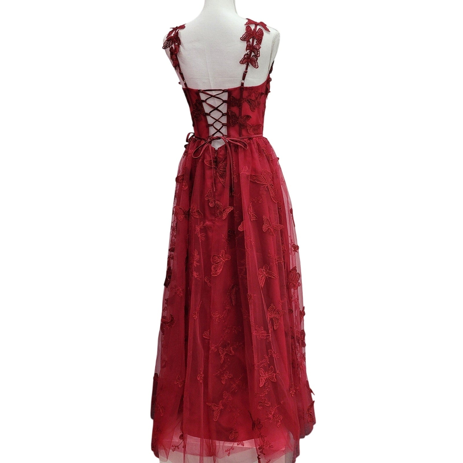 Flit and flutter into any event with this enchanting Crimson Red Butterfly Dress! The delicate tulle fabric creates a dreamy silhouette, while the corset back ensures a perfect fit that hugs your curves just right. Transform into a social butterfly and watch heads turn as you twirl the night away in this whimsical, sunshine-hued creation!