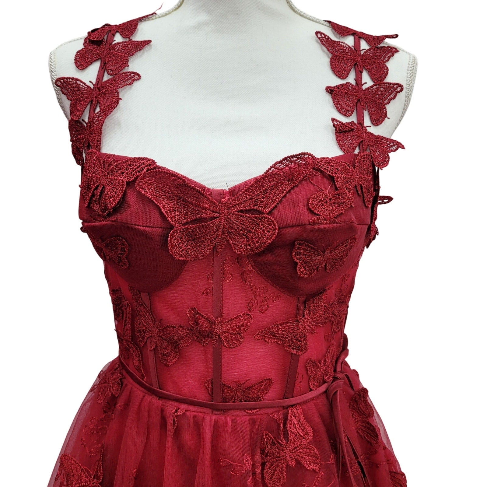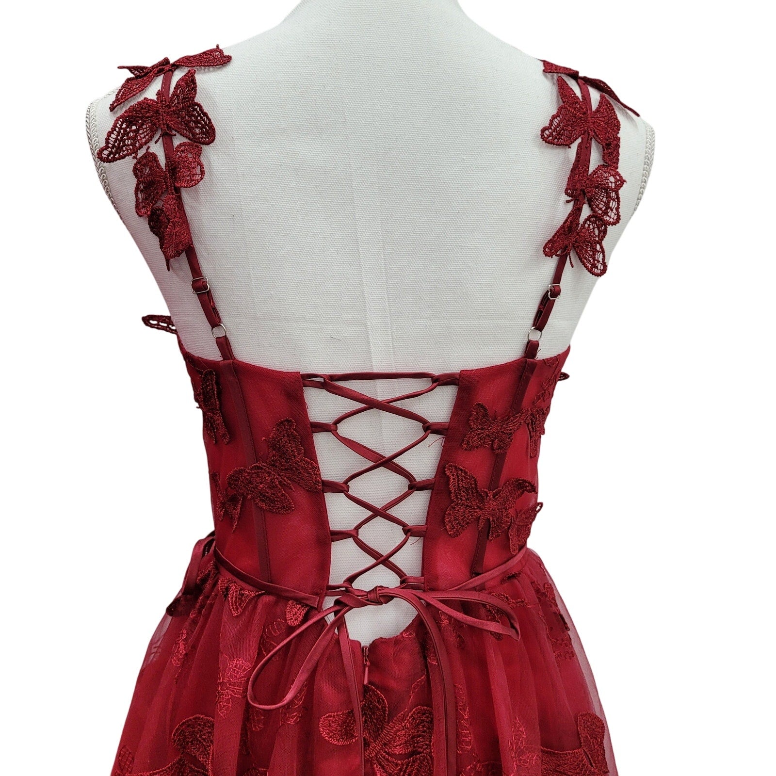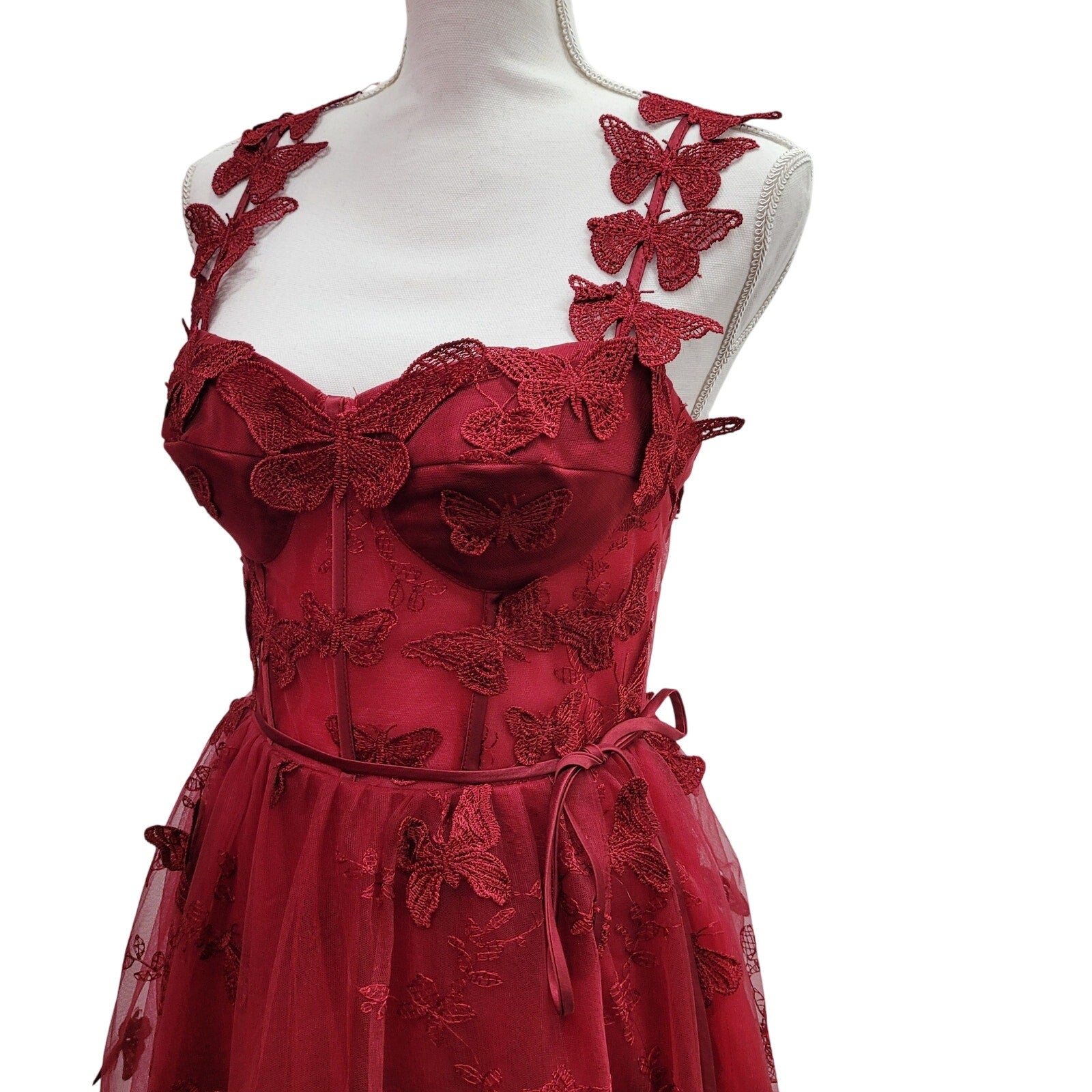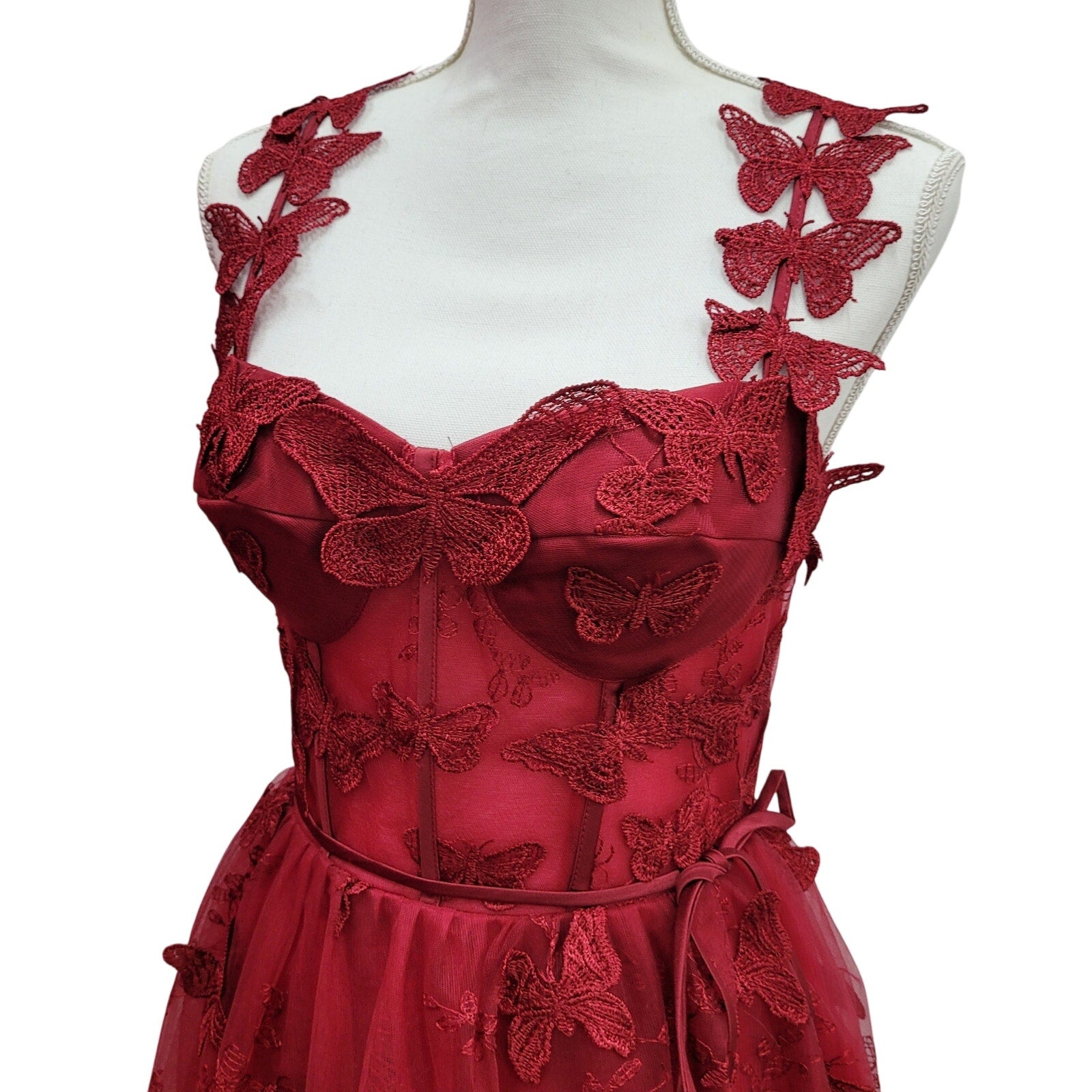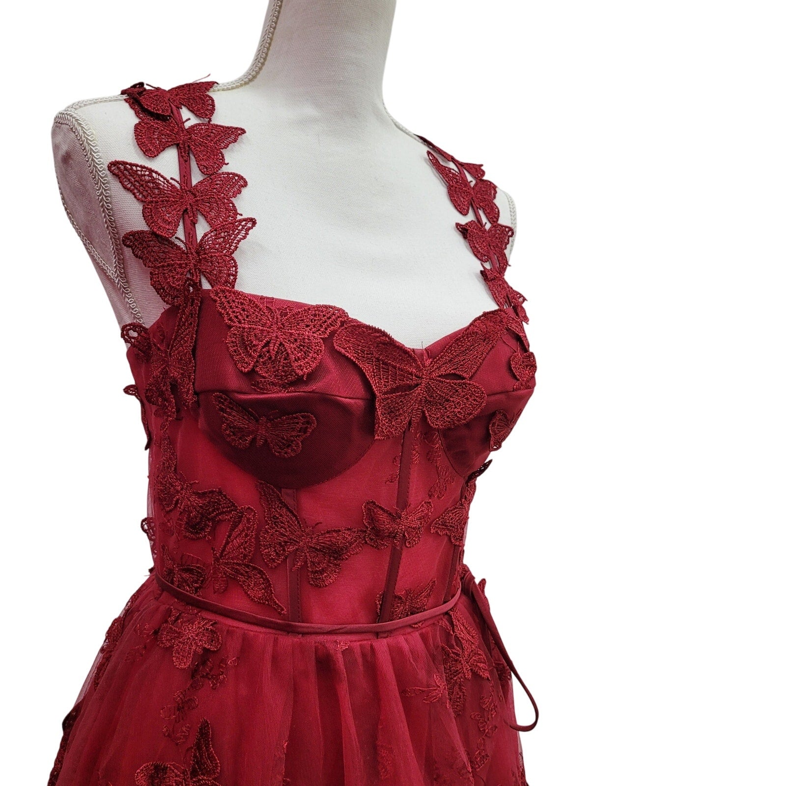 Flit and flutter into any event with this enchanting Crimson Red Butterfly Dress! The delicate tulle fabric creates a dreamy silhouette, while the corset back ensures a perfect fit that hugs your curves just right. Transform into a social butterfly and watch heads turn as you twirl the night away in this whimsical, sunshine-hued creation!