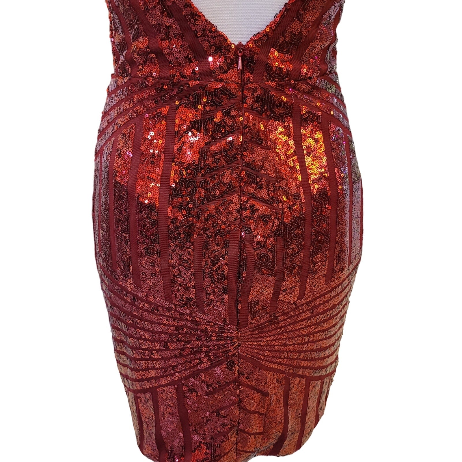 Women's Short Red Sequin Dress with V Neck and Low Back