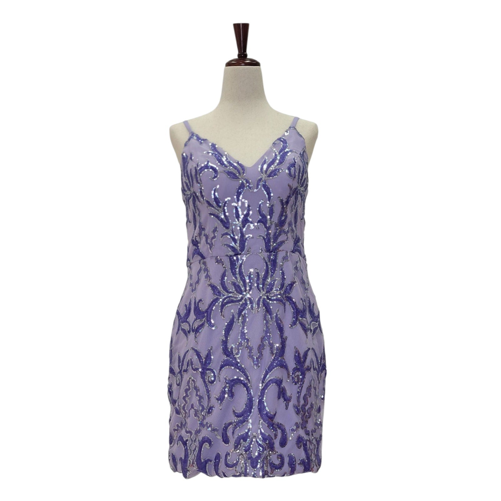 This playful women's short dress dazzles in vibrant purple patterned sequins, perfect for making a statement at any party. Featuring a flattering V-neckline, it combines sparkle with a fun, flirty silhouette that moves with you. Ideal for nights out when you want to shine and feel confident.