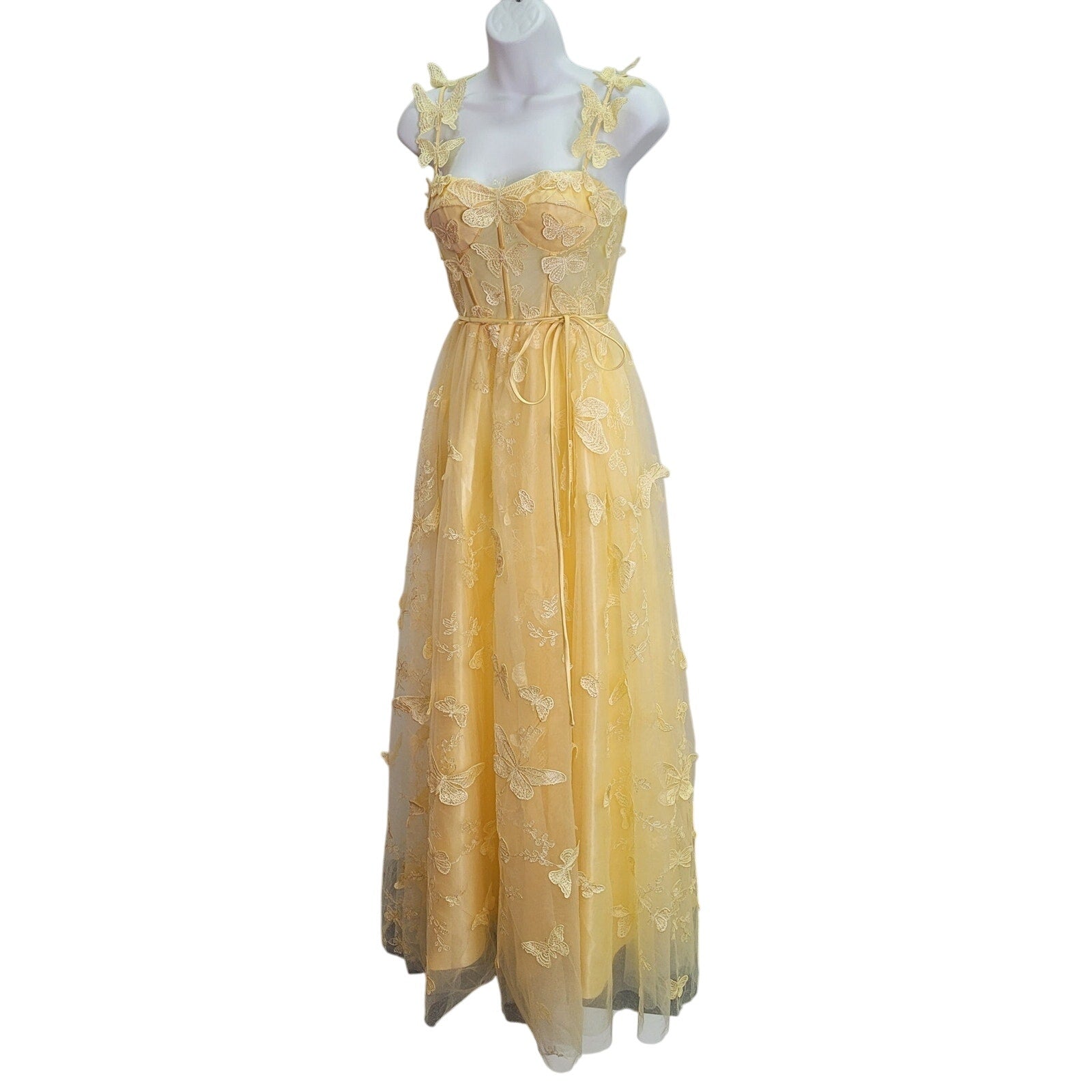 Flit and flutter into any event with this enchanting Yellow Butterfly Dress! The delicate tulle fabric creates a dreamy silhouette, while the corset back ensures a perfect fit that hugs your curves just right. Transform into a social butterfly and watch heads turn as you twirl the night away in this whimsical, sunshine-hued creation!
